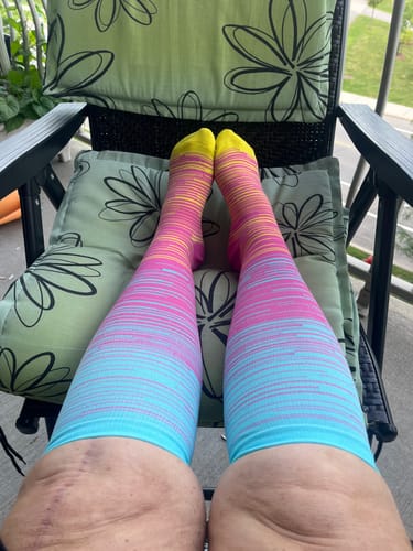Elles sont donc adaptées aux mollets plus larges ou aux personnes qui ont du mal avec les bas de contention classiques.